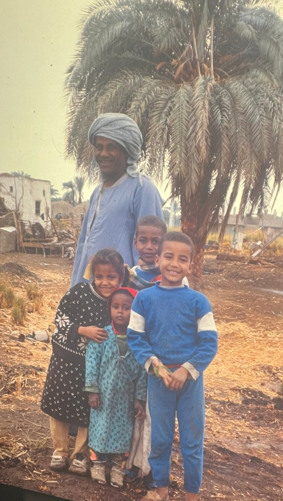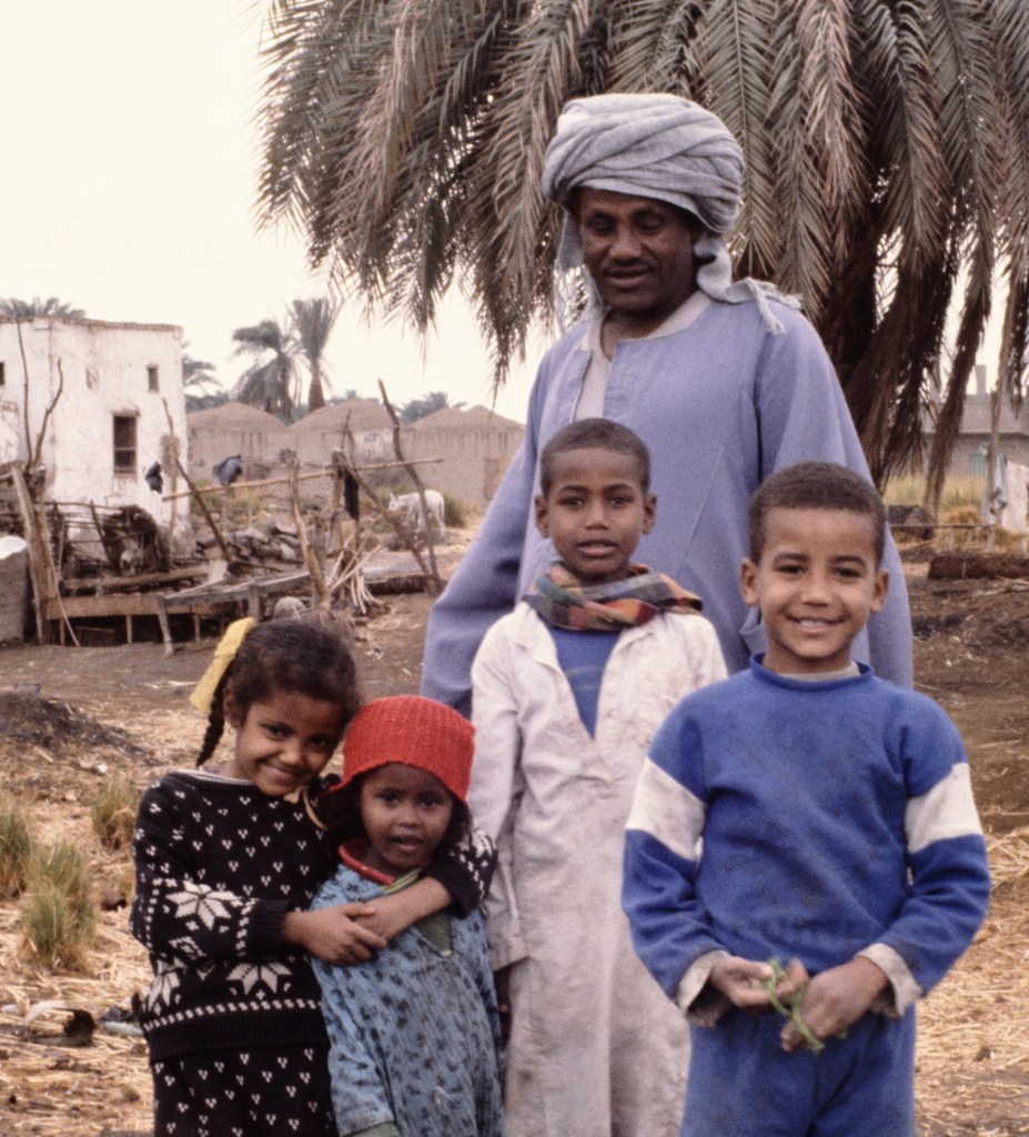 Our first head man was Ibrahim Abd Bast. Good friend from 1978, this kind man assisted project artist Jan Fairservis, wife of Dr. Walter Fairservis, director of the Hierakonpolis Project, 1967-1994. Ibrahim beams with joy and pleasure with his family. In 1997 he was also proud to have new prominence in his family and direct the men in the Temple-Town Hierakonpolis Project.