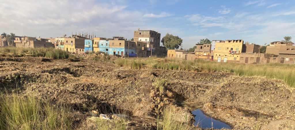 In 1897-99 houses occupy the same locations as outlined on the site map published in 1902 (Quibell and Green, Hierakonpolis). Since 2013, more homes stand along feeder canal on west and exit canal on south framing the ancient site, Temple -Town Hierakonpolis. These multi-generational residences expand with their families although they say that they cannot purchase more land. Building four stories may become the rule.
