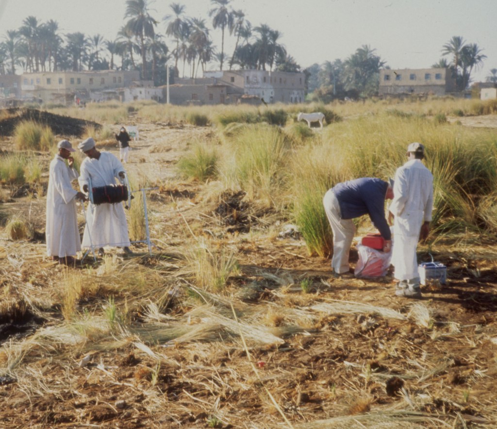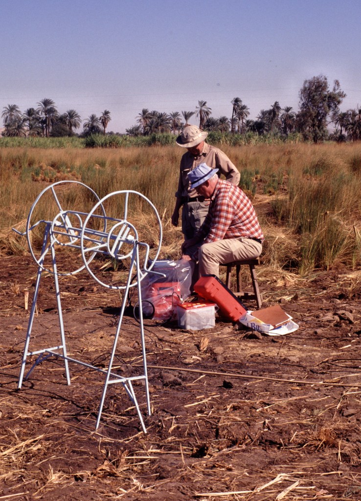 Resident team designed large wheel/ spindle to carry, roll up or lay the long cables. Seismic surveys spanned the Temple-Town Hierakonpolis site linking also the ancient east and west outliers and nearby desert. Care and efficiency sped the long work days. All of us had to stop movement and be silent to permit sound waves to register on the seismograph. ‘Stop and go’ enlivened our fieldwork with Dr. David Gold to announce both.