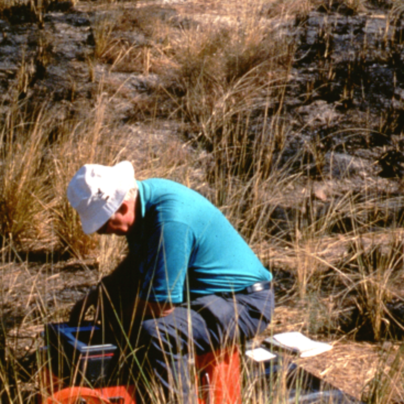 Dr. Shelton Alexander records and prints the data from the seismograph, viewed by Dr. Bruce Williams, 1999.