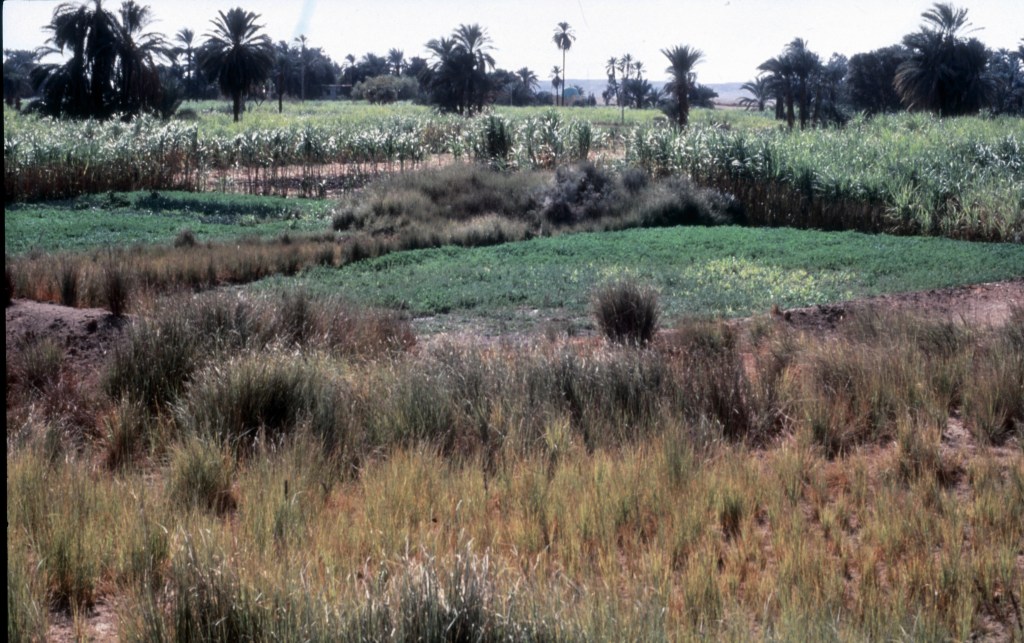 Cutting the long grass each field season is important but selective to work areas. 2008 Haj Said on left directs and Salah El Amir energizes his teammates. Said Bustawy is next, Mohamed Ibrahim inspects front center; on right Mohamed Sidein in blue and Salah Sidein with faz/hoe. Tall Ahmed Abdl Bast will measure water, Mahmoud el Sayed (Dr. Noor el Din’s graduate student) watches, Yousef Atef’s brothers in back.