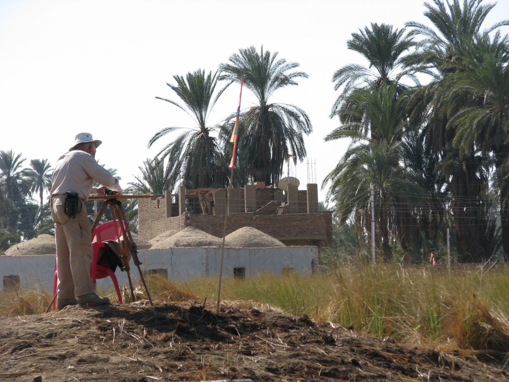 Essential to the Geoarchaeological, Hydrogeological and Geophysical Fieldwork is the careful mapping of Hierakonpolis – new maps of main site and two outlier mounds within the cultivation, Nile farmland, and the area to connect it to the region, Wadi Abu Sufian in the neighboring desert. Gold is meticulous and master topographer and surveyor. He employs theodolite and alidade with ground truth ever present in his lens and mapping. First maps in 1999 and each subsequent year were given to the Antiquities Office in Edfu and Cairo, Abbasia.